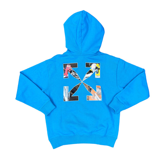 Off-White Kids Light Blue Back Logo-Print Monster Design Hoodie
